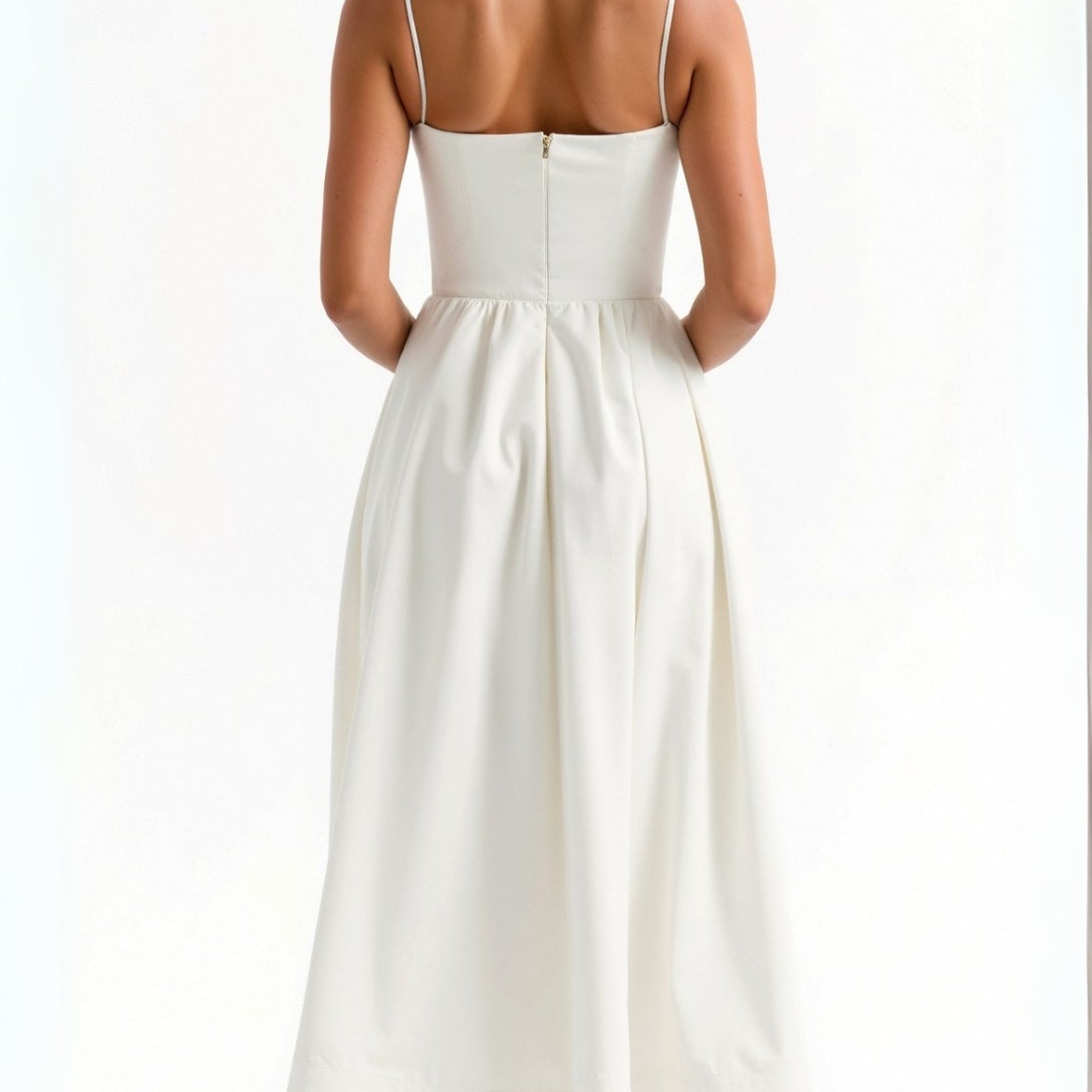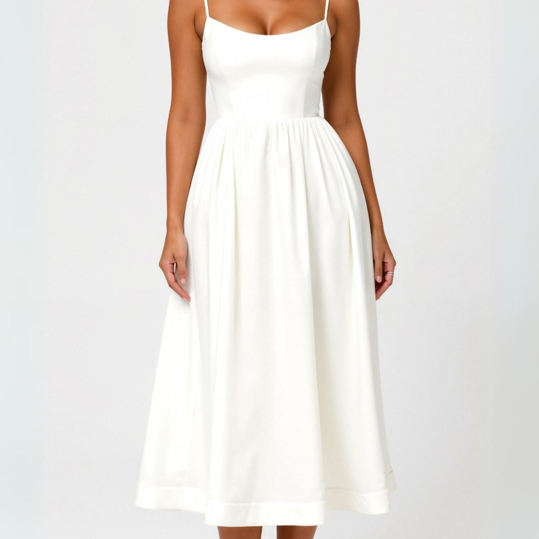 Structured Midi Dress with Spaghetti Straps | Elaris