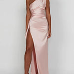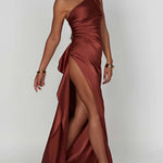One-Shoulder Satin Maxi Dress with High Slit | Aurelya