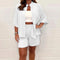 Design: Two-piece set with button-up shirt and shorts with elastic waistband